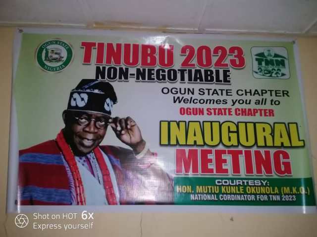 However, the office opened to pursue 2023 Presidency of Tinubu has a big billboard mounted with the inscription: “Tinubu 2023. Tinubu is Non-Negotiable, (TNN 2023)” – Sponsored by Hon Mutiu Kunle Okunola.