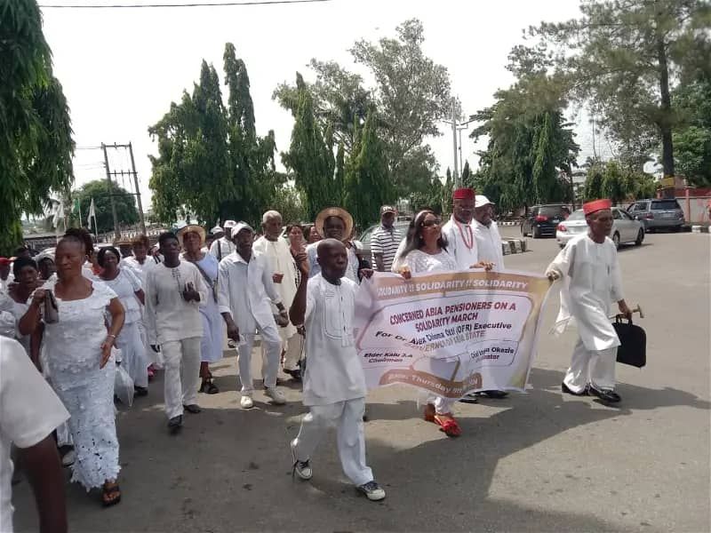Abia Pensioners under the umbrella of Concerned Abia Pensioners during the week staged a solidarity march round Umuahia, the State capital, singing and praising God for using Governor Alex Otti to end their many years of sufferings.