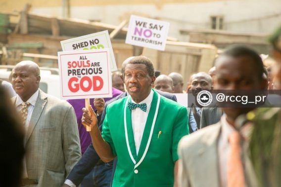 Adeboye later led the protest against widespread insecurity in Nigeria.