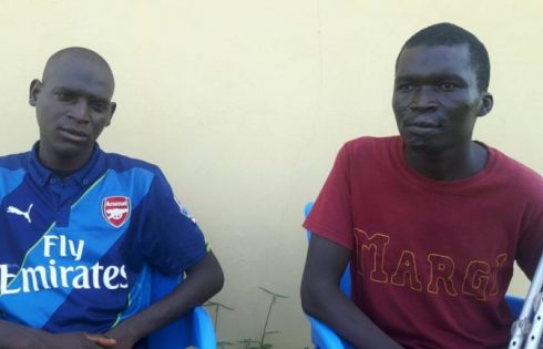Abubakar (left) with another Boko Haram suspect, Ismail Buni at a military detention camp in Bornu
