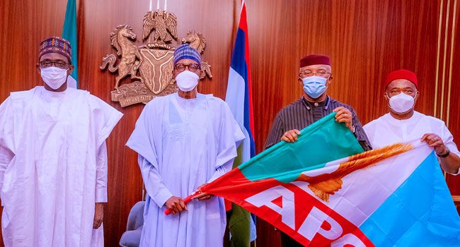 Okeke was received on Wednesday at the Presidential Villa Abuja by President Muhammadu Buhari in company of APC Caretaker Committee Chairman and Yobe State Governor, Mai Mala Buni, and Imo State Governor, Hope Uzodinma.