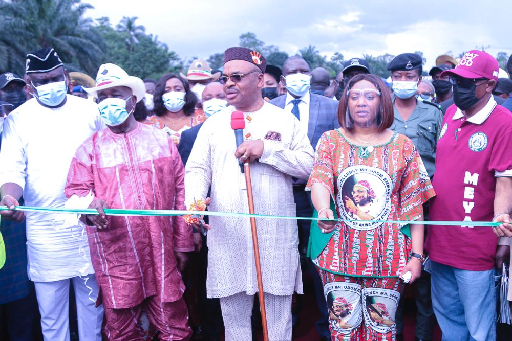 Chidi Tony/ Governor Udom Emmanuel has inaugurated the Second Phase of the Nto Edino / Ekwereazu Road that comes with twin bridges to link some Obot Akara communities and also ease movement from Akwa Ibom State to Abia State.