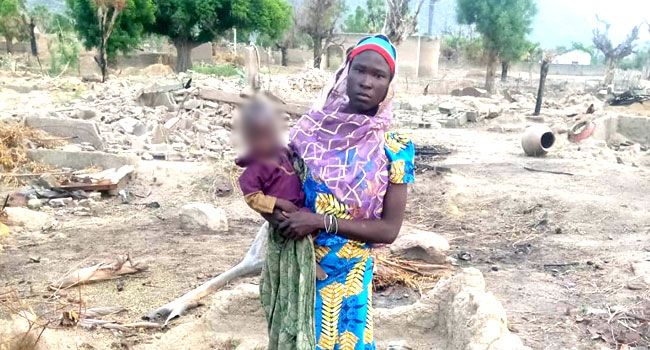 Mary, the post said, was found with her son on Tuesday by troops of 26 Task Force Brigade while on patrol around Ngoshe – a town in Borno State
