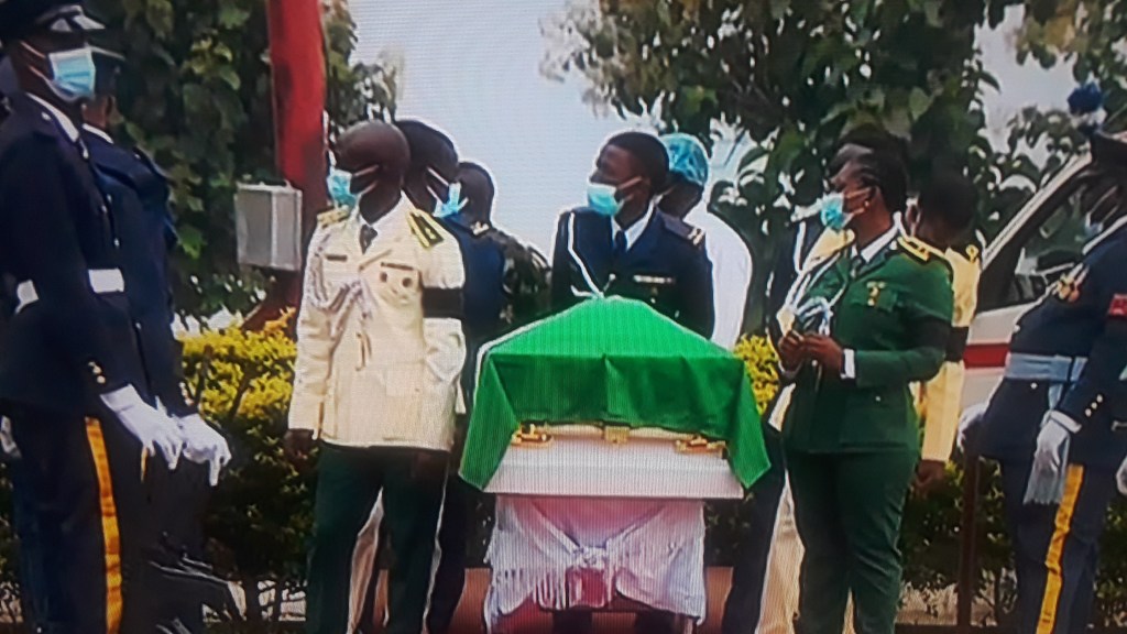 The burial of Nigeria’s first female helicopter combat pilot, Tolutope Arotile, who died from injuries she sustained following a freak raod accident at NAF base Kaduna, is ongiong at the National Military Cemetery in Abuja.