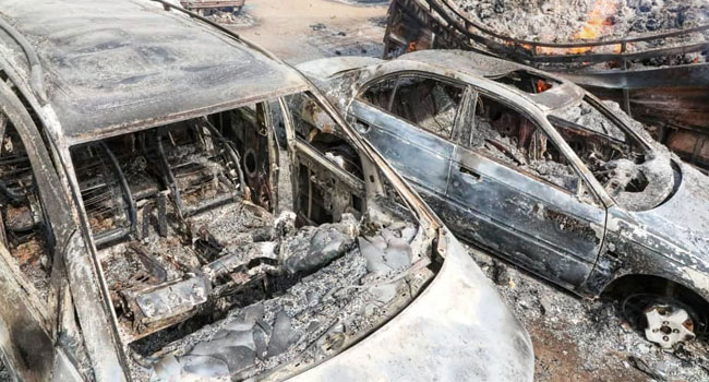 Unconfirmed eyewitnesses account, however, put the number of people killed at, at least 20 with no fewer than 18 cars, including heavy-duty trucks, set ablaze by the insurgents.