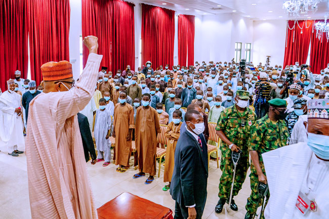 Yusuf Bello| President Muhammadu Buhari on Friday received the freed students of Government Science Secondary School, Kankara, in Katsina State who were abducted by bandits last Friday.