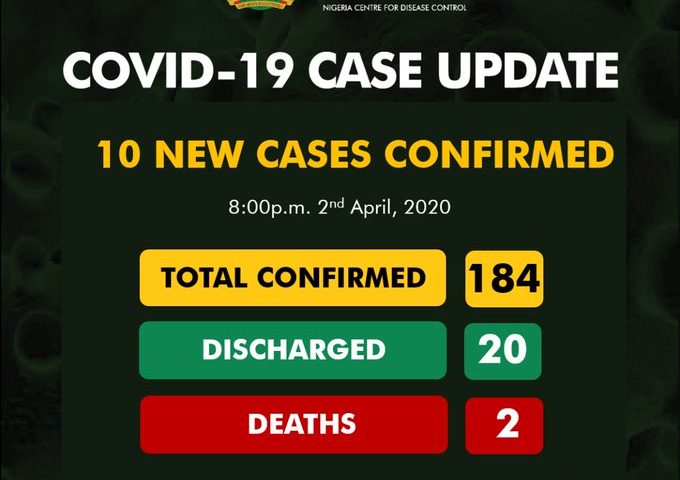 Nigeria on Thursday confirmed that ten new people have tested positive to coronavirus bringing the total number of confirmed cases of COVID-19 in Nigeria to 184. The Nigeria Centre for…