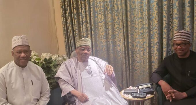 PHOTOS: Peter Obi, Yusuf Baba-Ahmed meet with Babangida, Abdulsalam in Minna