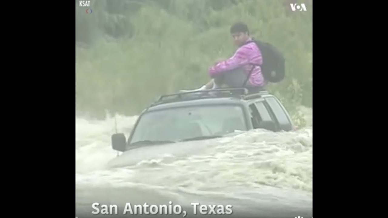 Firefighters rescued a man atop his SUV after it got stuck in floodwater in San Antonio, Texas. Severe weather made for impossible driving conditions in the area. Officials said emergency…