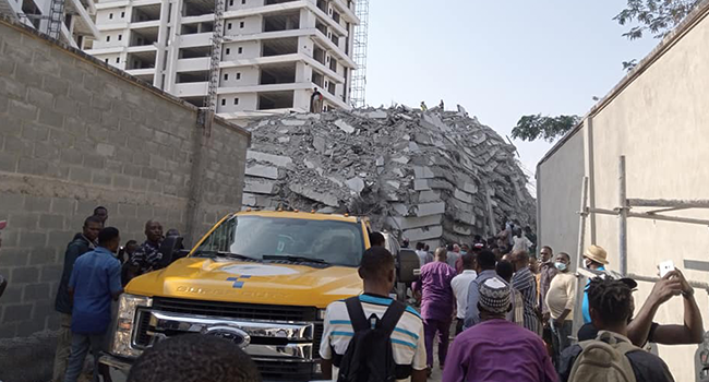 The building, which was under construction, collapsed along Gerald Road, Ikoyi, a highbrow area in Lagos.