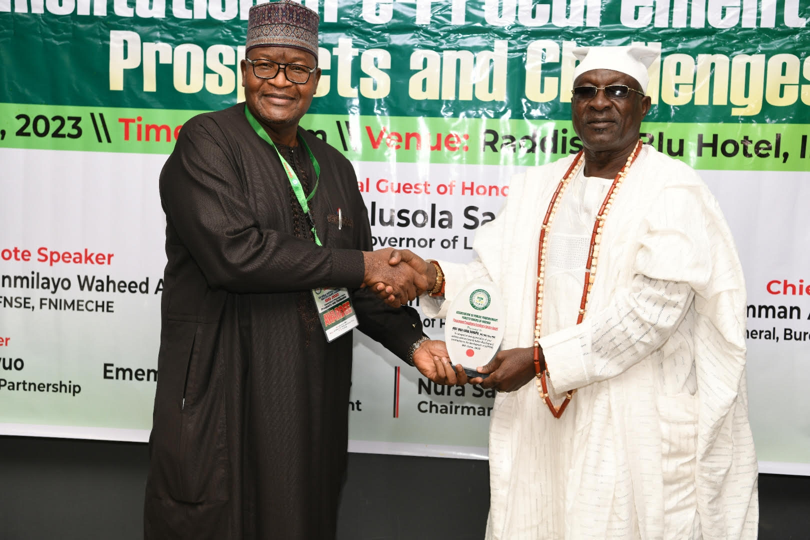 Cover Pix: L-R: Prof Umar Garba Danbatta, Executive Vice Chairman/Chief Executive Officer, Nigerian Communications Commission (NCC) and Chief Ahmed Akasoro, The Ashogbon of Lagos, at the presentation of the Procurement Compliance Excellence Service Award to Danbatta during the 3rd Annual National Conference/Induction Award Ceremony by the Association of Public Procurement Practitioners of Nigeria (APPON) held in Lagos recently (Thursday June 8, 2023).
