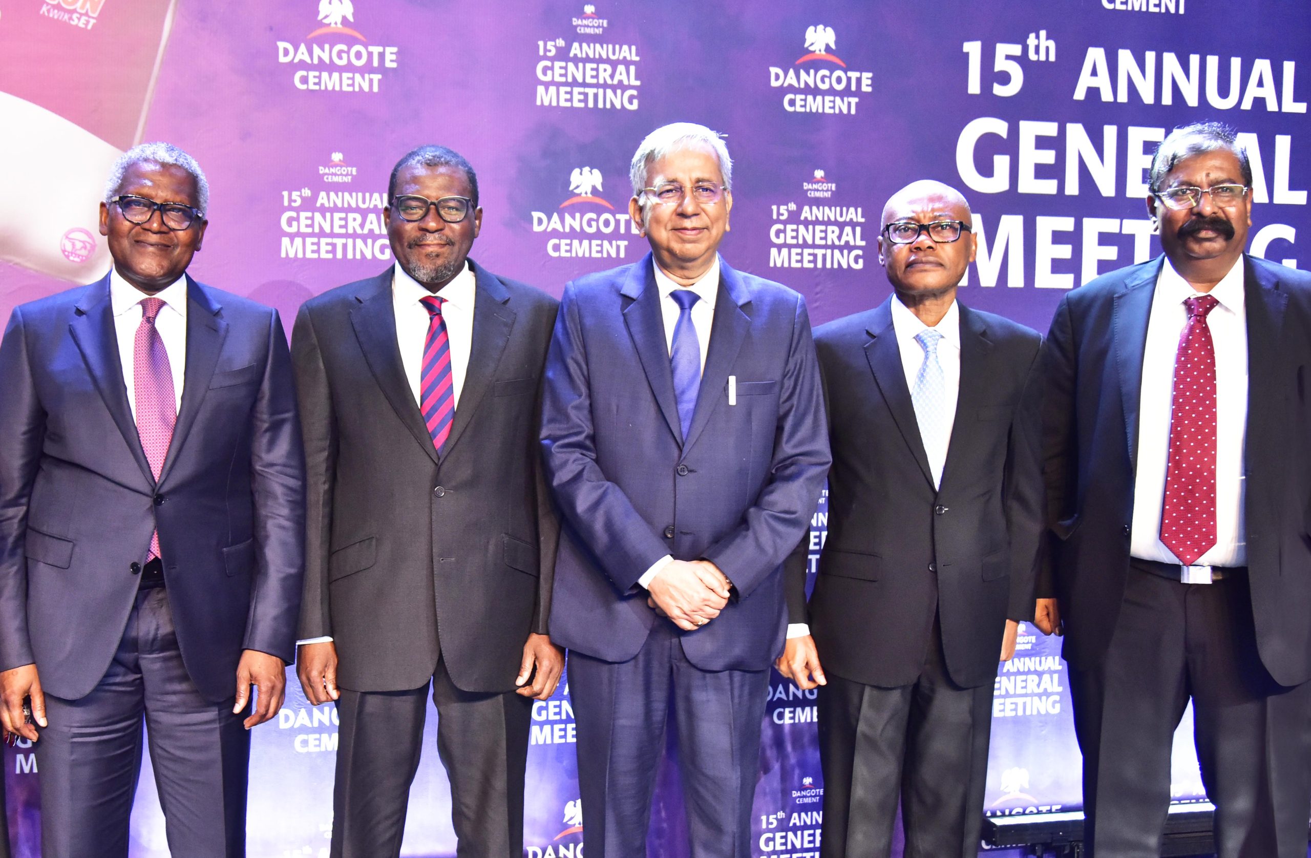 Cover pix: L-R: Chairman, Dangote Cement Plc, Aliko Dangote; Non-Executive Director, Dangote Cement Plc, Abdu Dantata; Group Managing Director, Dangote Cement Plc, Arvind Pathak; Non-Executive Director, Dangote Cement Plc, Olakunle Alake; and Non-Executive Director, Dangote Cement Plc, Devakumar Edwin, at the 15th Annual General Meeting (AGM) of Dangote Cement Plc, in Lagos on Tuesday, May 28, 2024.
