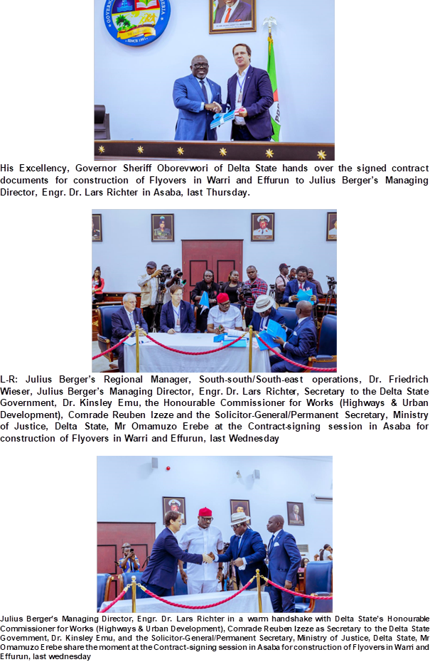 – Julius Berger MD, Engr. Dr. Lars Richter as Delta State Government and construction leader sign contract for construction of multiple flyover projects in Effurun, Warri.