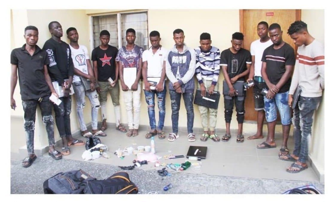 It noted that the suspects “were arrested in a rented three-bedroom apartment in the Ikotun area of Lagos, where they used as a Yahoo Yahoo school”.