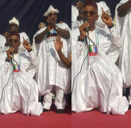 “Many people say Yahaya Bello is young and that he has fought many people. For every one that the governor has offended, I am asking all of you to forgive him. He is young, he is supposed to make mistakes. When you are young, you make mistakes, but you are supposed to learn from him. On his behalf, I am kneeling down to beg all of you to forgive Yahaya Bello if he has offended you.”