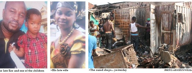 Forty-one-year-old Kenneth Eze, his wife, Favour, and their daughters Miracle and Marvellous were sleeping in their shop when the fire broke out according to the Nation.