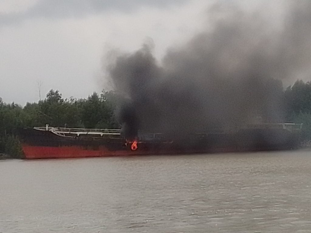 FG sets vessel of stolen crude oil ablaze in Delta, warns bunkerers, operators
