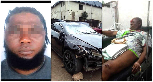The force of his car’s speed reportedly pulled down the concrete wall of his neighbour’s compound then dove out of the vehicle to escape.