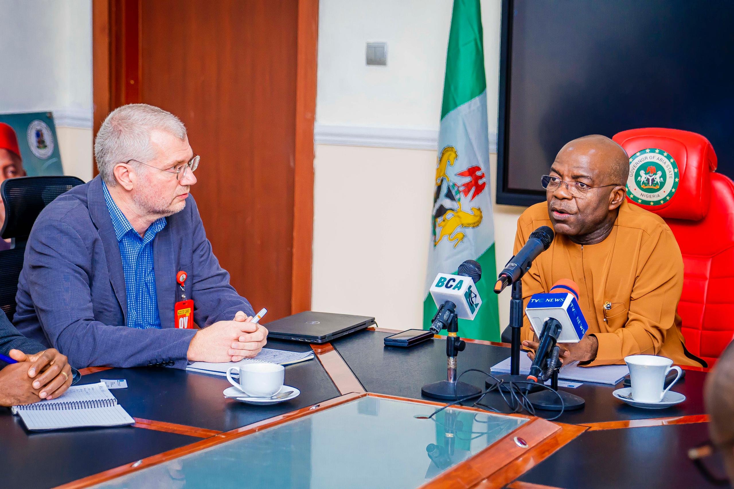 Cover pix: Governor Otti speaking during the meeting with UN Habitat, West Africa Portfolio Manager, Matthias Spaliviero.