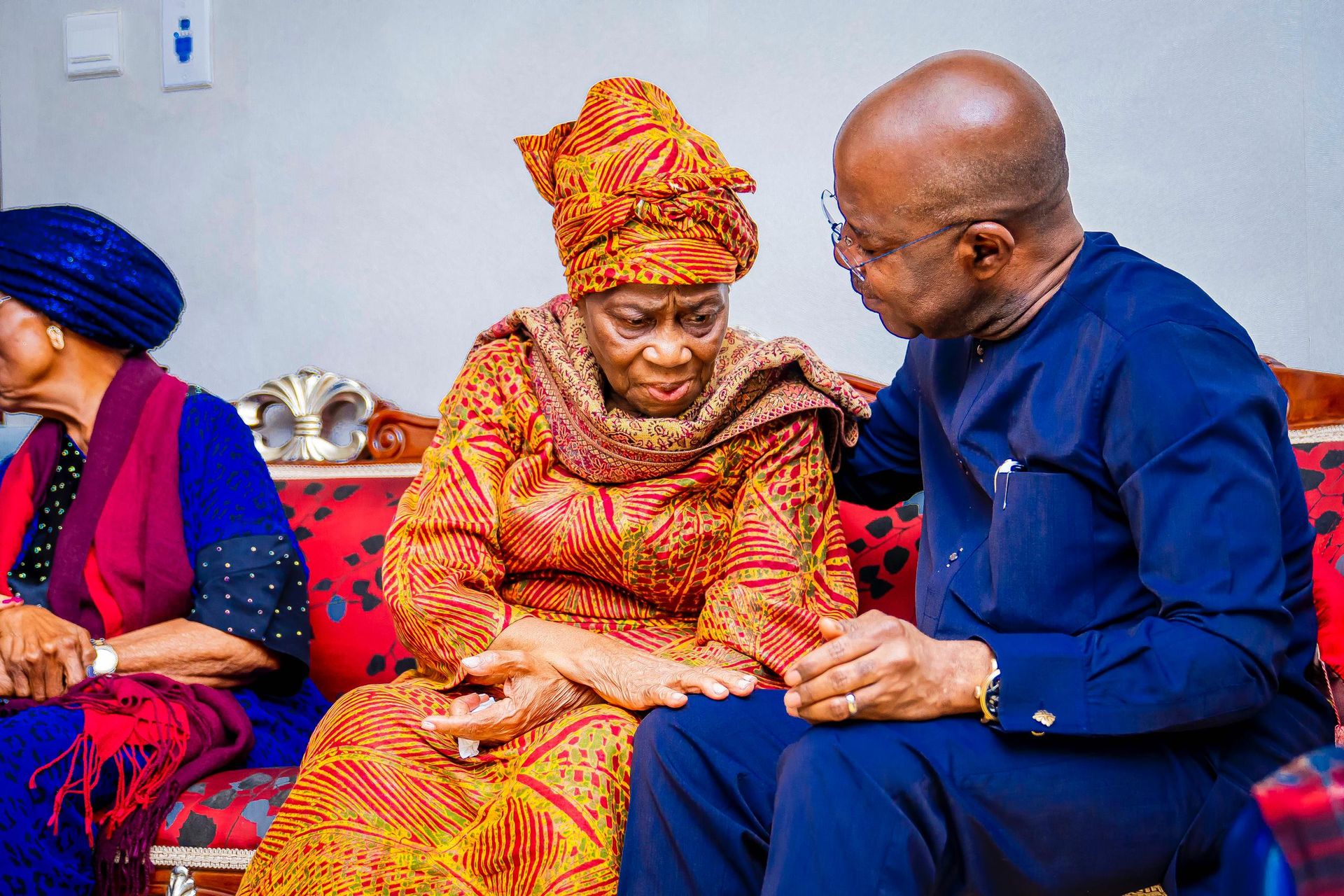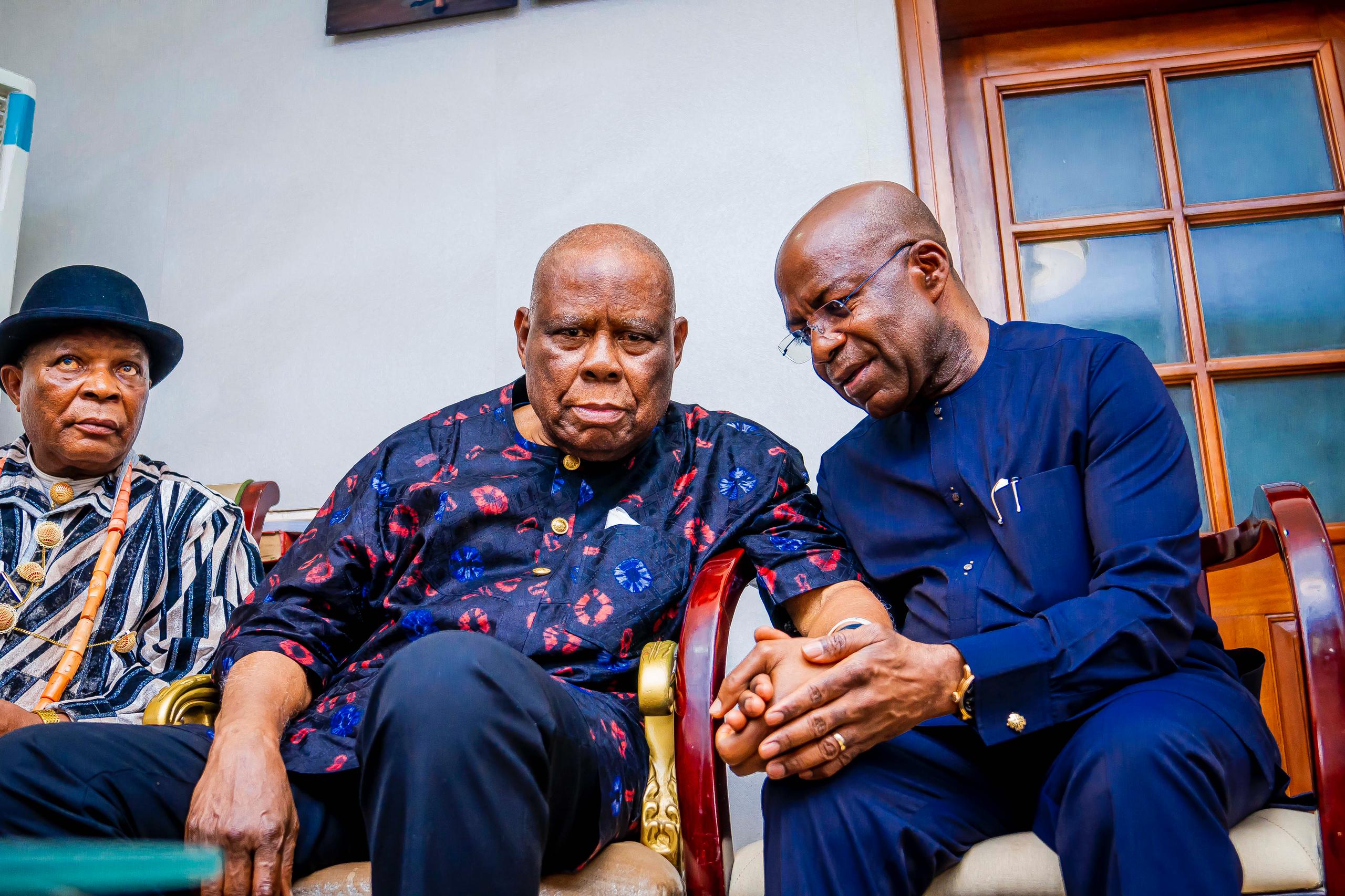 Governor Otti consoles Mrs. Stella Wigwe, the matriarch of the Wigwe family and mother of Late Herbert Wigwe