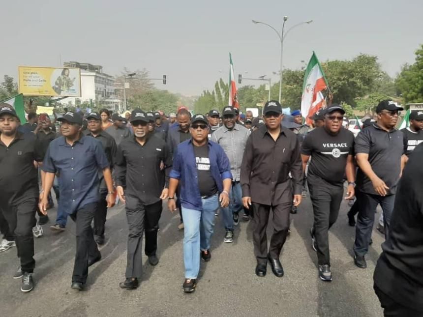 The leaders began their protest march from the party’s national secretariat, and walked through some streets of Abuja to the embassies where they submitted their petitions.