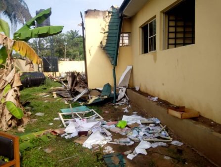 “The incident occurred in the early hours of this morning, Sunday 2nd May 2021. Our security guard on duty escaped unhurt but the destruction to the building and properties therein was extensive. Items destroyed include 345 ballot boxes, 135 voting cubicles, megaphones, water tanks, and office furniture.