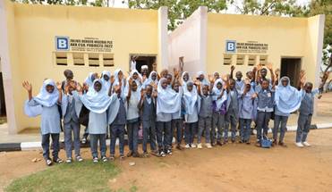 Cover Pix: Principal of Government Day Secondary School, Mr. Saidu B.A. Wuse with the Students, at the newly commissioned toilets in Sabon Wuse, Tafa L.G.A, Niger State