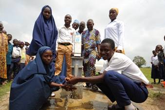 -Students of Government Day Secondary School, Gujeni, Kagarko, Kaduna State, at the Newly Constructed Water Borehole by Julius Berger