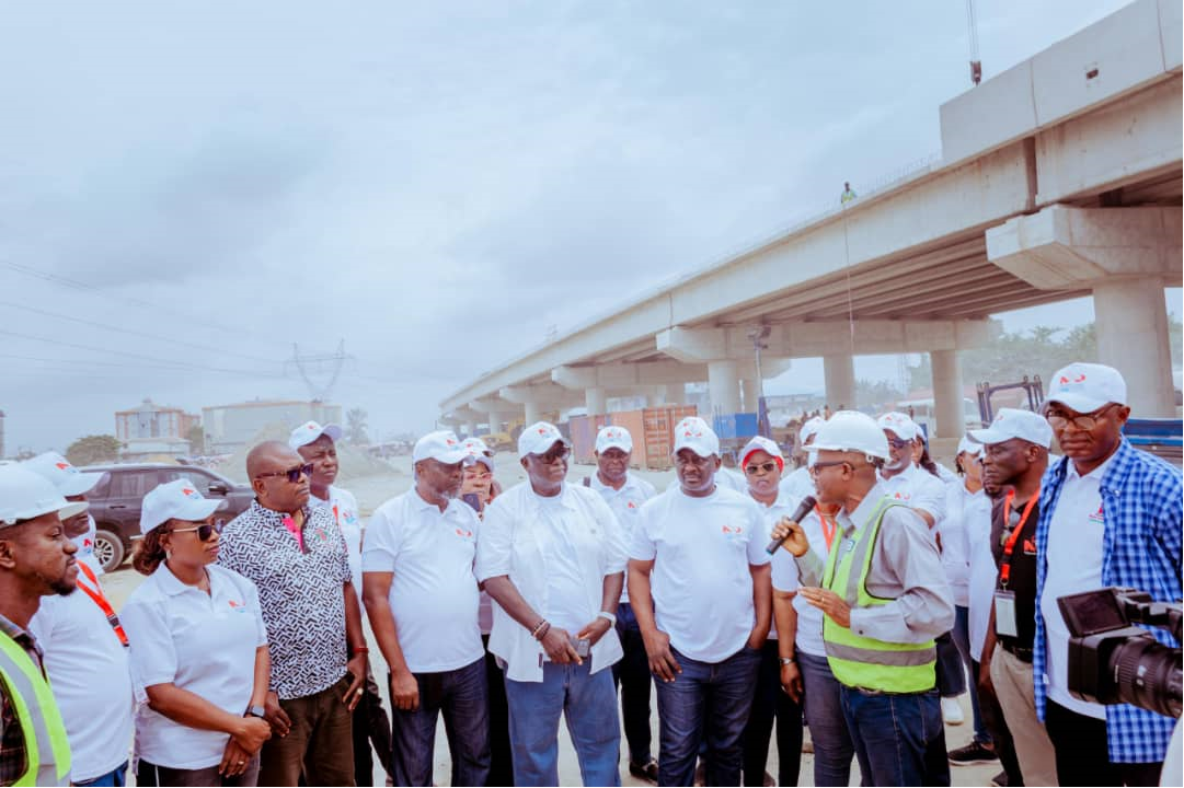 Cover pix: A Delta State Government official, Right, explaining details of Julius Berger‘s construction work at the DSC roundabout, Warri to members of the Nigerian Institute of Public Relations when the latter visited the site weekend. Listening attentively were, 3rd left, NIPR Council member, Thelma Okoh, Delta state Information Commissioner, Dr Ifeanyi Osuoza, NIPR Council Member, Paulinus Nsirim, winner of NIPR 2024 Best Practice Model Award, Elder