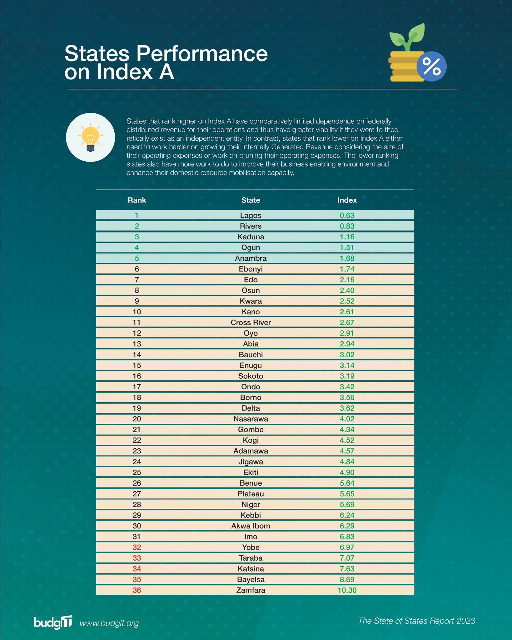 Lagos, River, Kaduna, Ogun, & Anambra ranked top in Budget IT #StateofStates2023 report, meaning these states rely less on FAAC allocation.