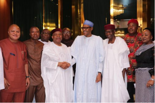 The delegation that met with the President was lead by deputy Senate President, Ike Ekweremadu, State governors from the South East, Ministers, Ohaneze President, Nnia Nwodo, amongst others.