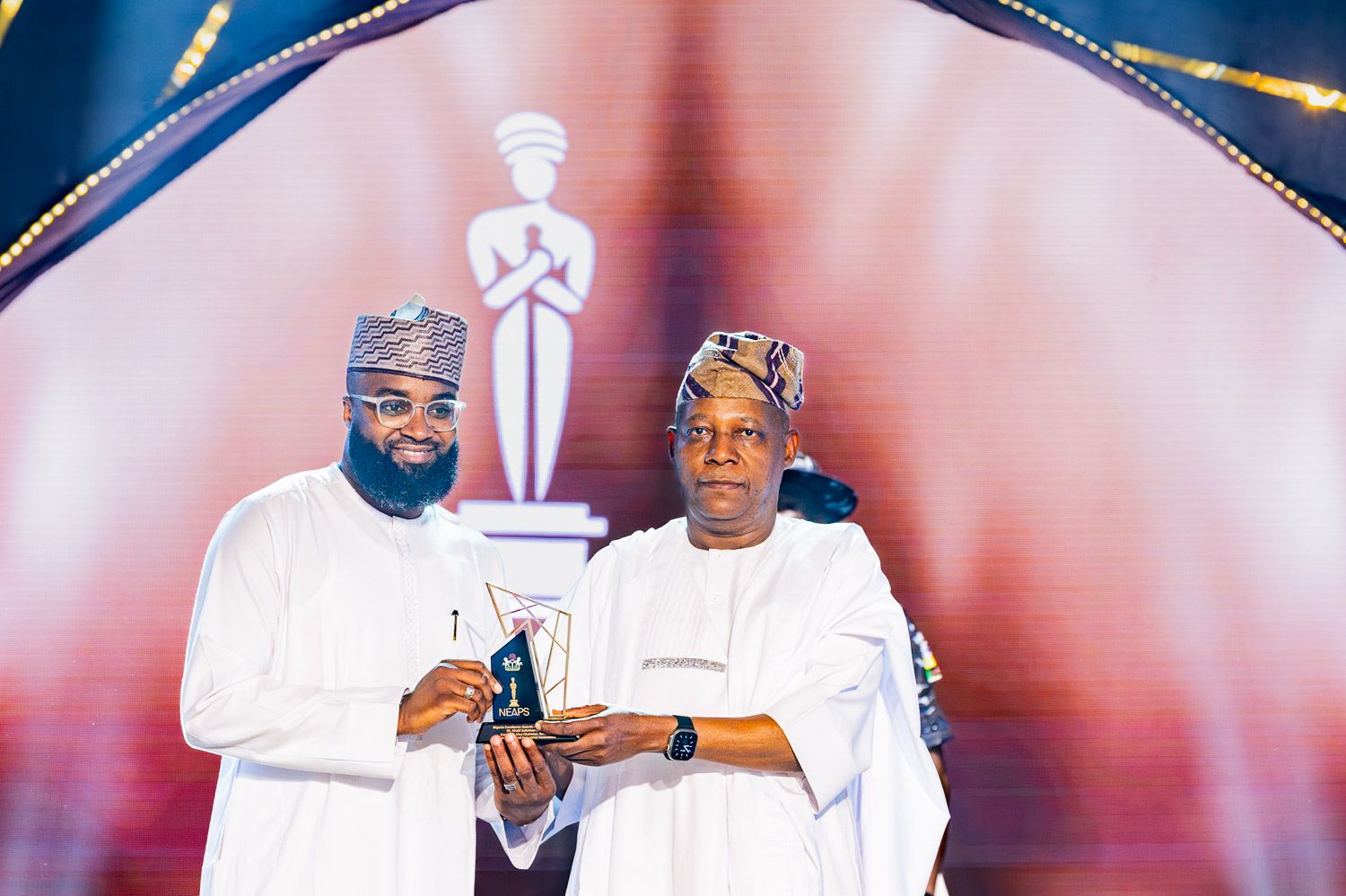 Cover pix: L-R: The Executive Vice Chairman/CEO of the National Agency for Science and Engineering Infrastructure (NASENI), Mr. Khalil Suleiman Halilu being presented the distinguished award for Engineering and Industrial Innovation at the 2nd edition of the Nigeria Excellence Awards in Public Service (NEAPS)  from the Vice President of Nigeria, Sen. Kashim Shettima, GCON on behalf of President Bola Ahmed Tinubu GCFR at the weekend in Abuja.
