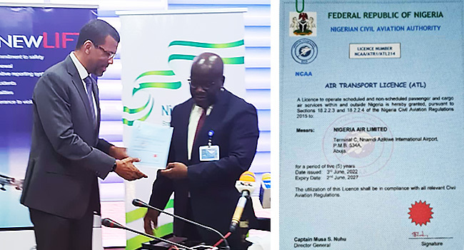 The new national airline is expected to provide scheduled and non-scheduled services. It is one of the licenses received by airlines before they can commence operation just as they await the all-important Air Operator Certificate (AOC) that fully guarantees them the right to begin air services.