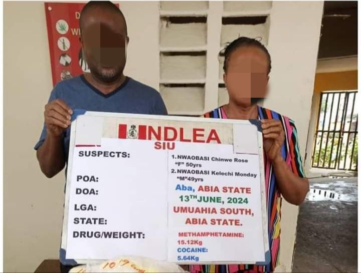 According to the statement, the operation, which was conducted on June 13 and 14 in Aba, Abia State, resulted in the arrest of Kelechi Monday Nwaobasi, 49, and his sister, Chinwe Rose Nwaobasi, 50. The siblings were found with 20.76 kilograms of cocaine and methamphetamine.