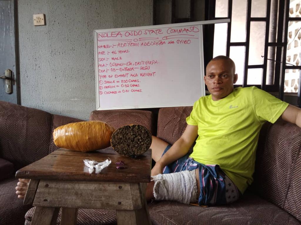 In Ondo, a notorious drug dealer at Ogbani-Oja Okitipupa, Okitipupa LGA, Adedugba Adeyemi, a.k.a Oyinbo, was arrested in his fortified den, where different quantities of Cocaine, Heroin and Skunk were recovered. Seven other suspects were arrested in some drug joints in other parts of the state, including Shasha market, Akure North LG; Asolo camp, Usho, Owo LG; Albert Link Street, Finger Licking hotel and Shittu street, all in Akure, the state capital.