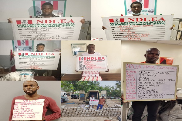 According to a statement by NDLEA spokesman, Femi Babafemi, seven traffickers were also arrested in connection to the smuggling by Brazil-based drug cartels.