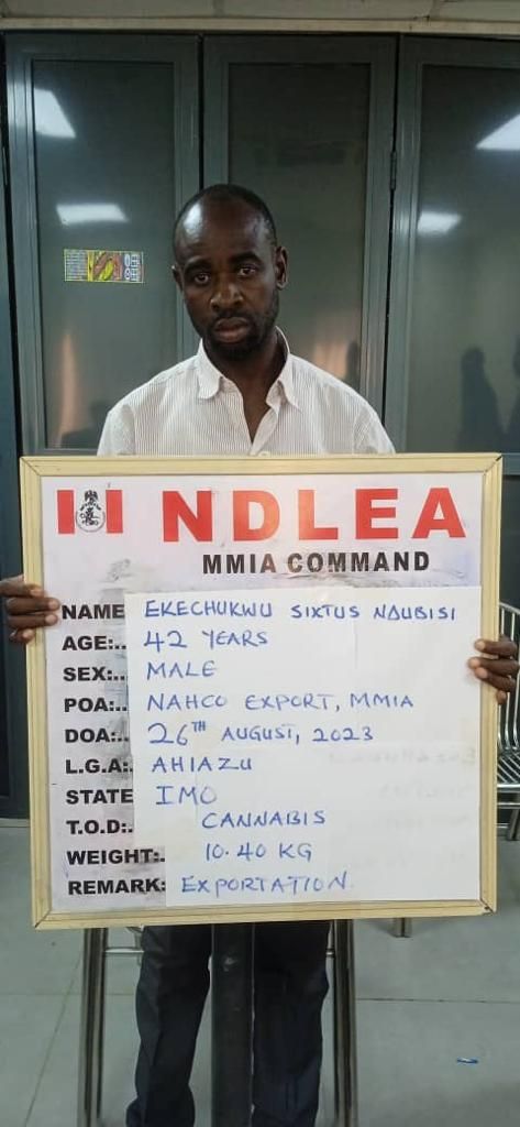 In the same vein, the NDLEA said an attempt by another syndicate to export 10.40kg skunk concealed with scent leaf and pepper, going to Nairobi, Kenya, was equally thwarted by its operatives attached to the NAHCO export shed of the airport on Saturday 26th August, adding that a suspect, Ekechukwu Sixtus Ndubuisi, has already been arrested in connection with the seizure.