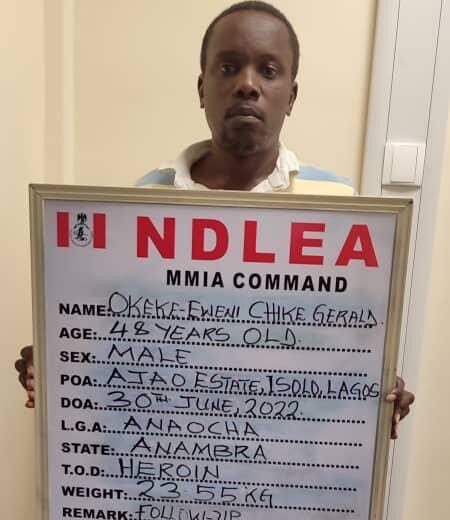 The National Drug Law Enforcement Agency (NDLEA), on Sunday, said its operatives intercepted 22 blocks of heroin weighing 23.55kilograms concealed in packs of Nestle Cerelac baby food at the Murtala Muhammed International Airport (MMIA), Ikeja, Lagos.