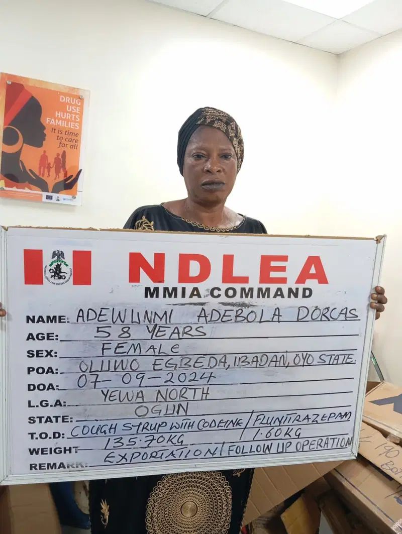 The National Drug Law Enforcement Agency, NDLEA on Sunday disclosed that its operatives, in Oyo state, arrested an Ibadan-based businesswoman, Mrs. Adewunmi Adebola Dorcas, and an auto parts dealer, Arinze Ora over attempts to export consignments of opioids and cocaine to London, United Kingdom and Congo Brazzaville respectively.