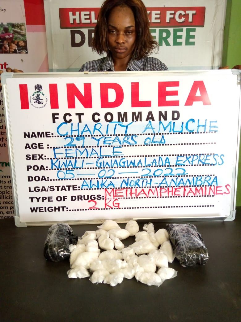 In the same vein, 2kg of Methamphetamine being brought to Abuja by a 29-year-old Charity Omuche from Anambra state was intercepted on Friday 4th Feb by operatives at Gwagwalada area of the FCT, while officers of the Kaduna Command of the Agency also arrested a suspect, Buhari Isah Umar with 300 shisha pens and 999 portions of synthetic cannabinoids with gross weight of 9.690kg.