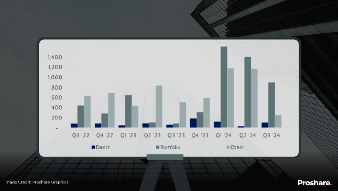 -Other investments, the next largest segment, declined by -79% QoQ to US$250m. The share of loans, which typically accounts for over 90% of the category’s inflow, plummeted to US$235m from almost US$1.2bn in Q2 2024.