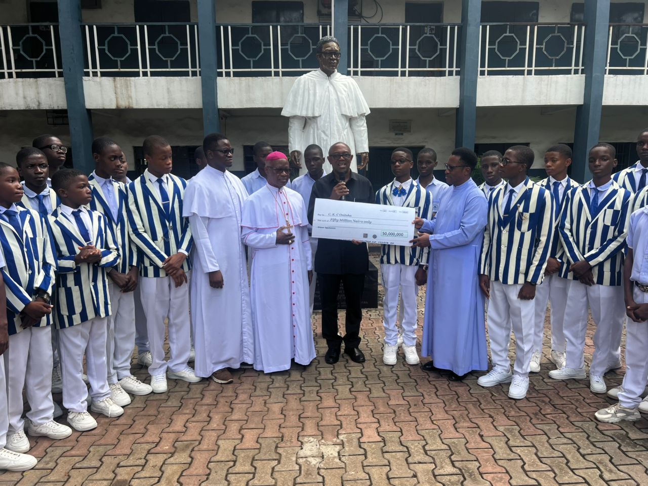 Former Governor of Anambra State, Mr. Peter Obi, on Thursday presented a cheque of ₦50 million to his alma mater, Christ the King College (CKC), Onitsha, for infrastructural development.