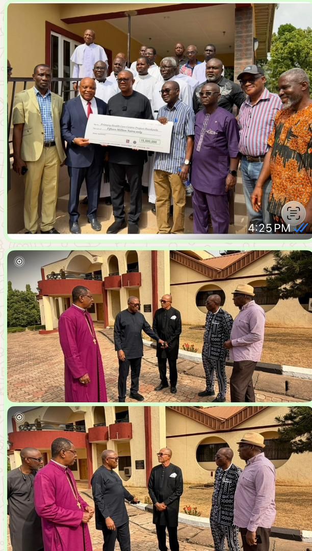 The Presidential Candidate of the Labour Party, Mr. Peter Obi, has donated the sum of ₦15 million to the Anglican Bishop of Enugu, The Rt. Rev. Prof. Samuel Obiajulu Ike, as further support for the completion and equipping of the primary health centre he built in Amafor, Ihuobala, in Nkanu East Local Government Area of Enugu State.
