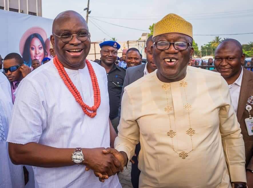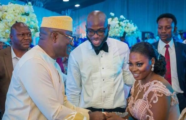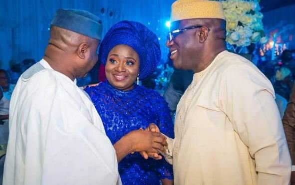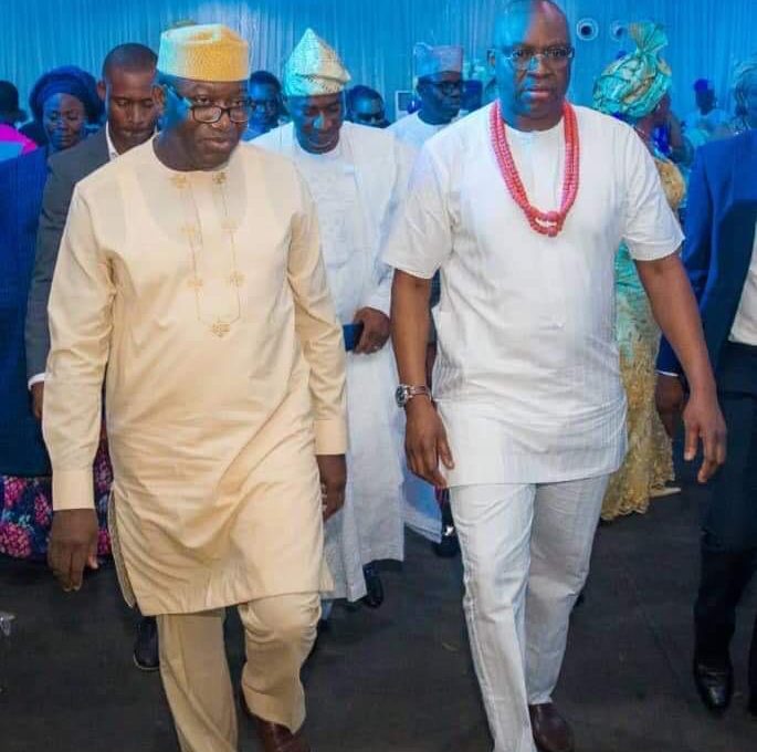 Two bitter political opponents, Ekiti state governor, Kayode Fayemi and his predecessor, Ayodele Fayose were together in Lagos on Saturday for the wedding of Tomiwa, one of the sons of Fayose.