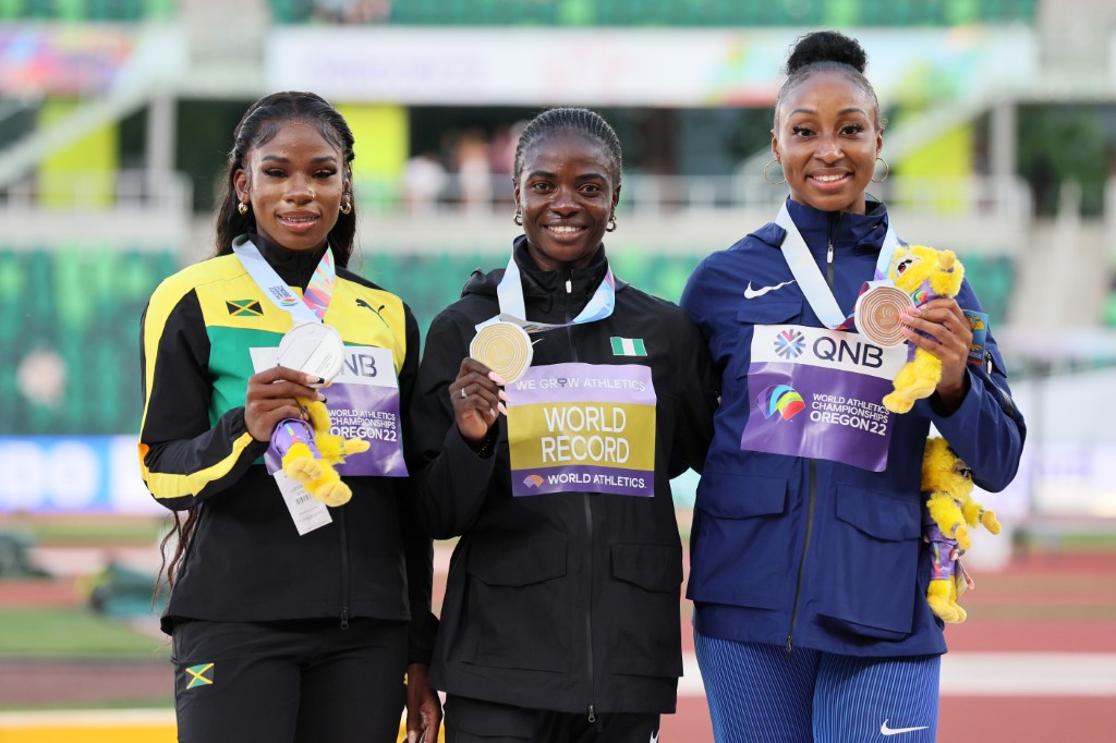 Amusan, 25, blazed over the line at Hayward Field in 12.06sec, not long after she smashed the world record in an overwhelming semi-final where she clocked 12.12sec.