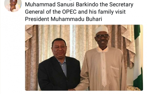 In the photos, where Barkindo and his children were shaking hands with the President, Ahmad wrote, “Muhammad Sanusi Barkindo the Secretary General of the OPEC and his family visit President Muhammadu Buhari.”