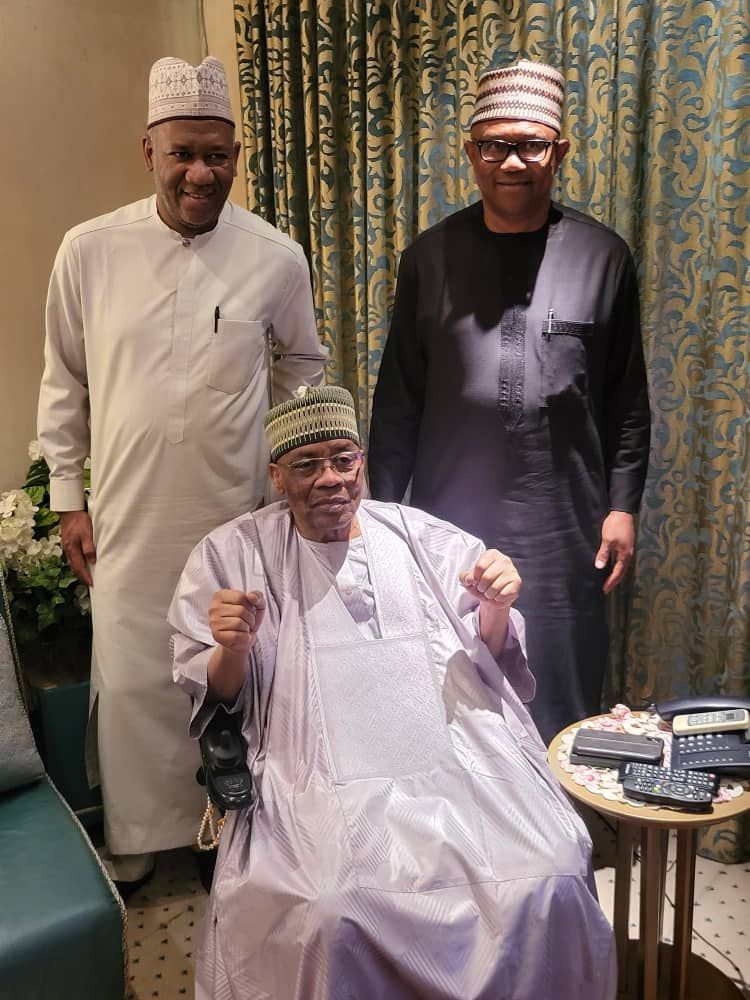 The presidential candidate of the Labour Party (LP), Peter Obi, and his running mate, Yusuf Baba-Ahmed, on Sunday visited two former heads of state, Ibrahim Badamosi Babangida, and Abdulsalami Abubakar, in Minna, Niger state.