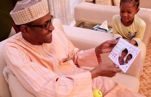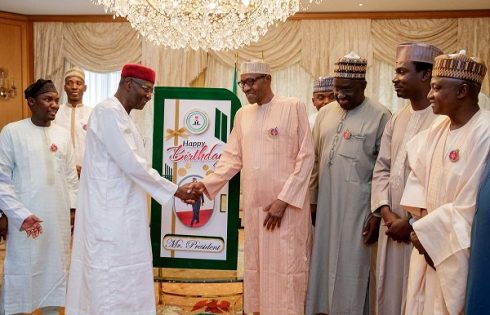 The president’s family led by his wife, Aisha Buhari, and some presidential aides and governors presented cards to the celebrant at the state house Abuja.