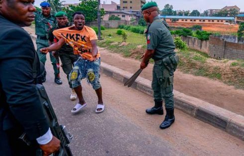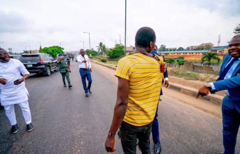 “The gang of suspected criminals met their waterloo Monday morning while attempting to unleash terror on a motorist around Ojota in-bound Alausa. Help however came for the motorist as Governor Sanwo-Olu’s convoy approached the scene to rescue him from the three machete-wielding criminals who were at the time, trying to forcefully drag him out of his vehicle.