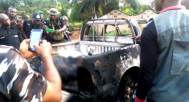 Anambra State Police Command, spokesman, Haruna Mohammed, said the attackers set a police patrol van set ablaze during the incident which occurred on Monday.